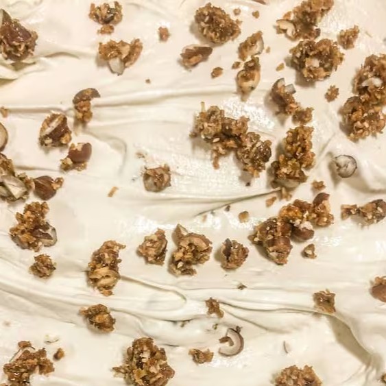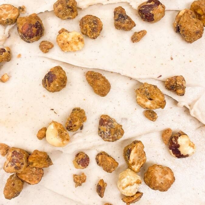 Sorvete de avelã vegano com avelãs caramelizadas crocantes
