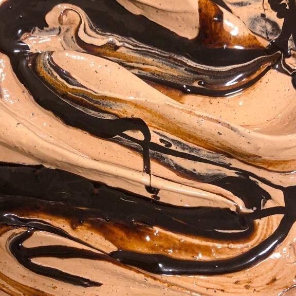 Nossa edição especial de páscoa! Sorvete de chocolate com pedaços de bolo de bolo de cenoura e calda de chocolate :)