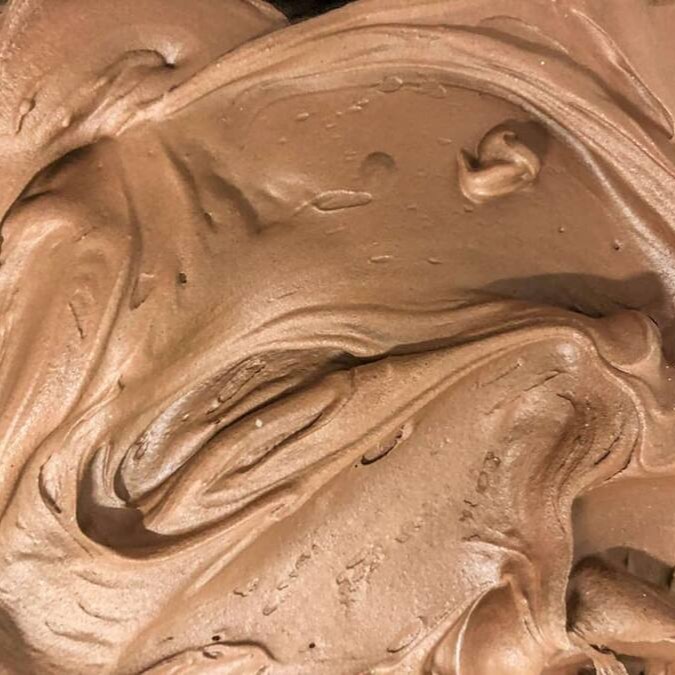 Sorvete de chocolate belga. Adoçado com eritritol e maltitol.