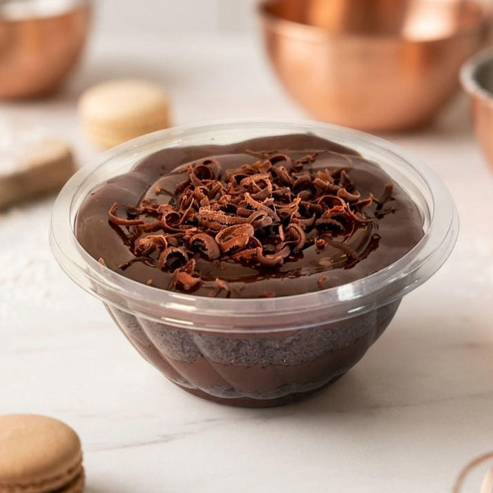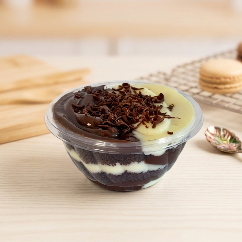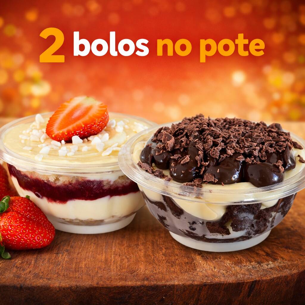 pote com brigadeiro de chocolate e brigadeiro de ninho cremoso, bolo de chocolate, raspas de chocolate para decorar (pote de 150ml)