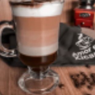 Café em camadas feito com calda de chocolate, leite vaporizado e café expresso.