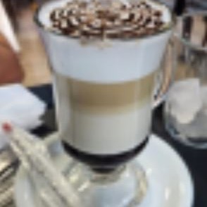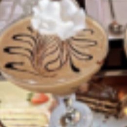 Expresso, sorvete, creme de avelã e chantilly.