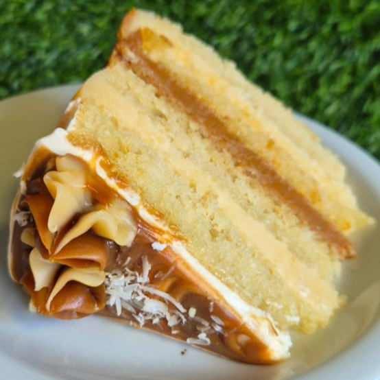MASSA DE BAUNILHA COM RECHEIO DE DOCE DE LEITE, COCO E NNHO