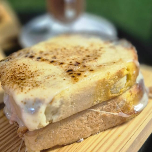 SANDUICHE COM PAO ARTESANAL, COSTELA BOVINA, CEBOLA CARAMELIZADA E QUEIJO COALHO MASSARICADO