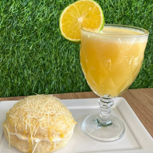 PÃO DELICIA DE REQUEIJÃO COM SUCO DE LARANJA