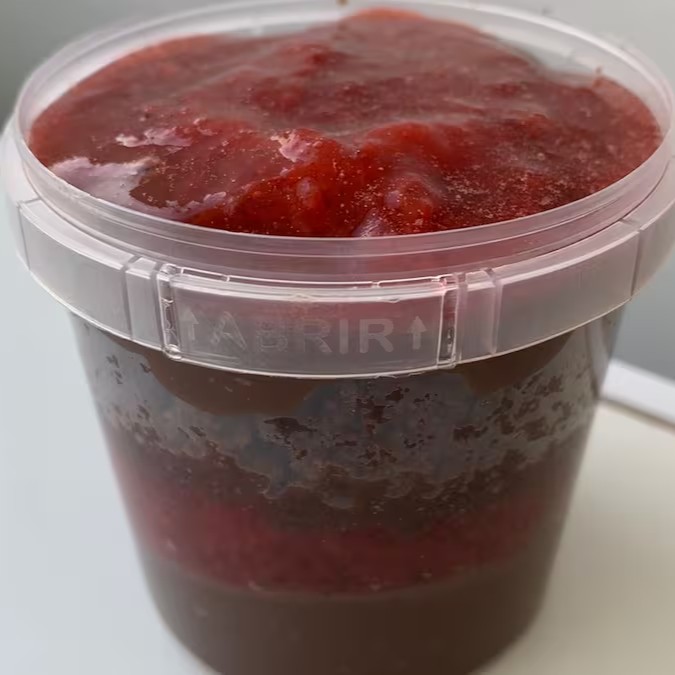 Pote recheado com massa de chocolate, brigadeiro cremoso de chocolate e geleia de morango. Aproximadamente 220g