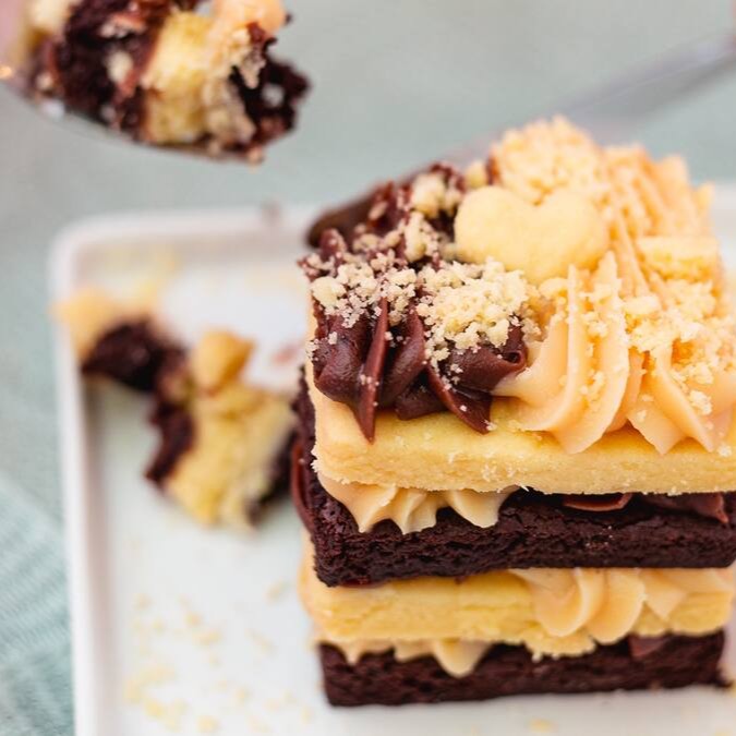 A mais pedida e mais amada da confeitaria. Camadas intercaladas da nossa queridinha torta búlgara, sequilho amanteigado e recheio. Diferente de tudo que você já provou.