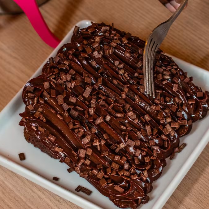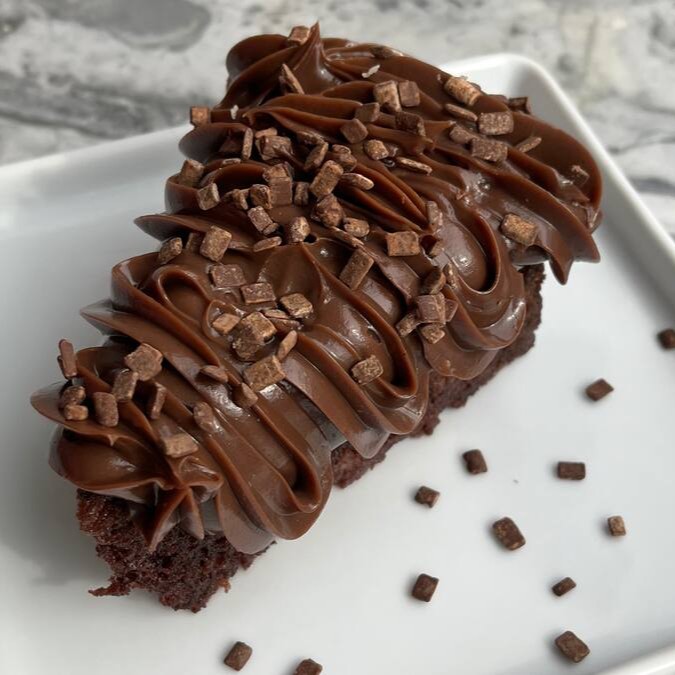 Fatia deliciosa de chocolate, coberta com nosso exclusivo brigadeiro super cremoso e granulado ao leite.