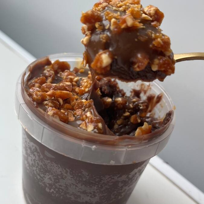 Versão no pote do nosso sabor clássico, bolo de chocolate com recheio de brigadeiro cremoso, caramelo salgado e crocante de amendoim.