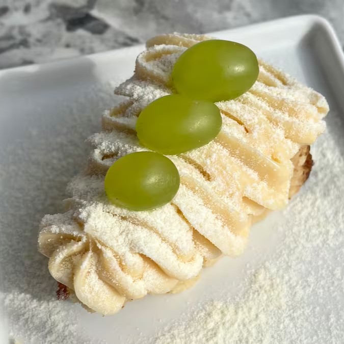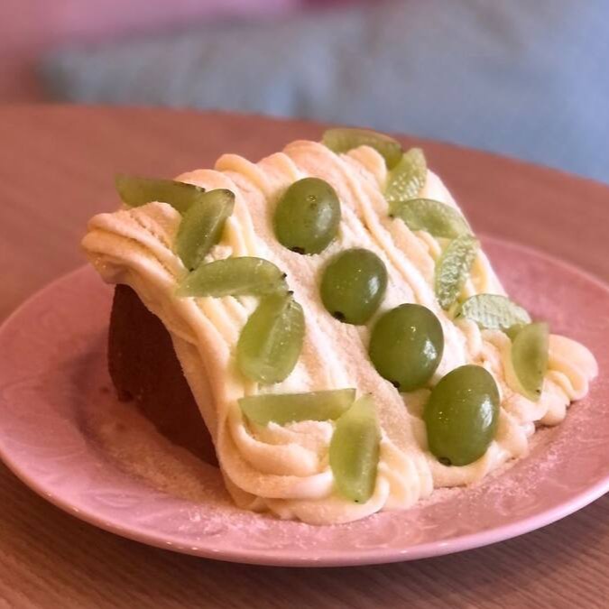 Versão petit da fatia deliciosa branca, coberta com nosso exclusivo brigadeiro branco super cremoso, finalizada com leite Ninho e uvas