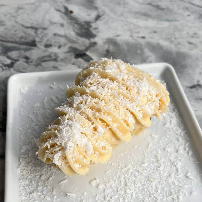 Versão petit da fatia deliciosa branca, coberta com cocada cremosa e com nosso exclusivo brigadeiro branco super cremoso, finalizada com coco ralado.