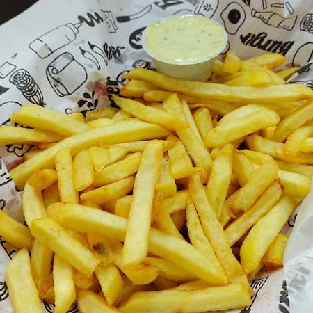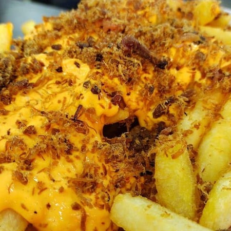 400g Batata Frita creme de cheddar e farofa de Bacon, acompanha maionese artesanal