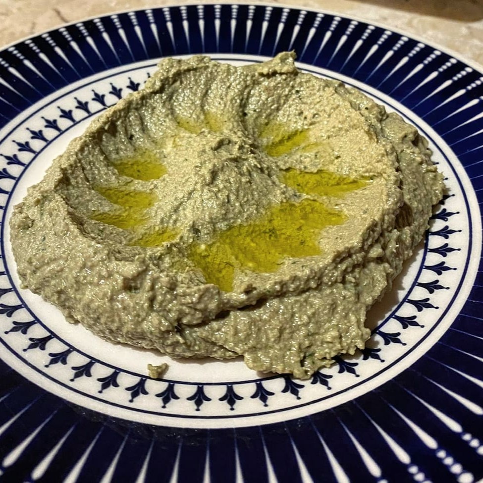Pasta de berinjela defumada. Acompanha pão sírio