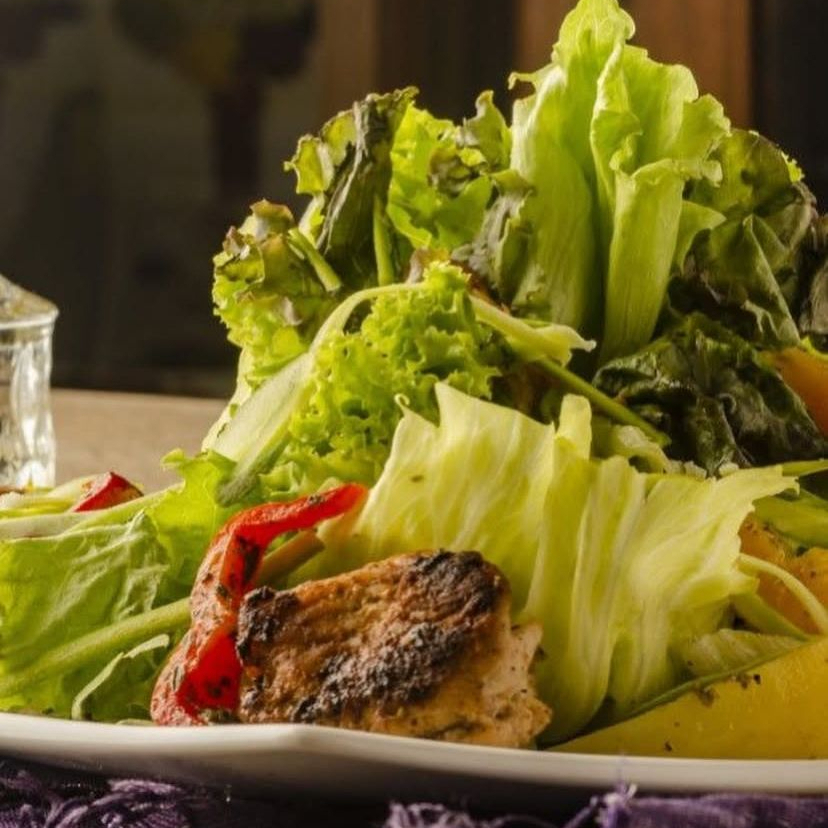 Mix de folhas com legumes e filezinho de frango grelhado