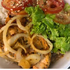 Filé de frango ao molho de tomate regado os molhos vermelho coberto com queijo e presunto. Acompanha arroz soltinho . Feijão de caldo E salada fresquinha