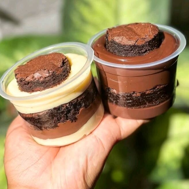Copo com cremoso chocolate e Brownie Ideal pra 1 pessoa. Copo de 140ml