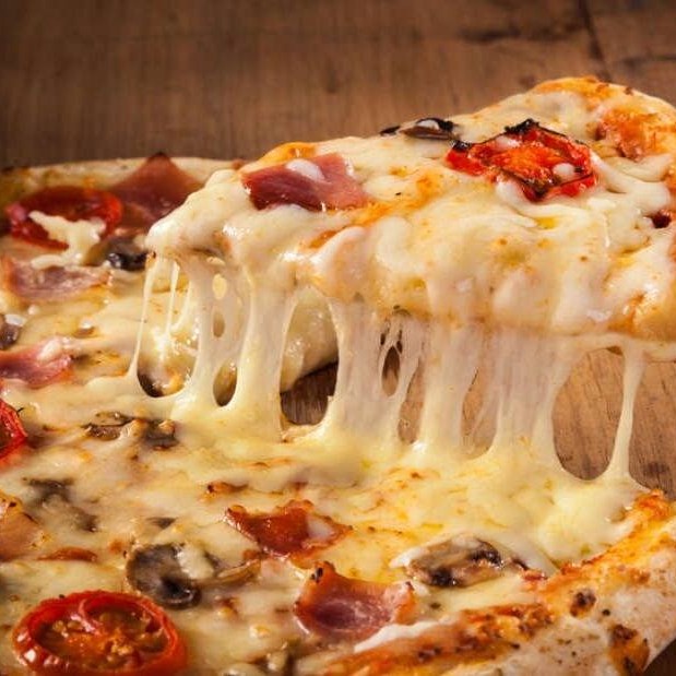 Molho, muçarela, presunto, tomate, cebola, pimentão, ovo e orégano.