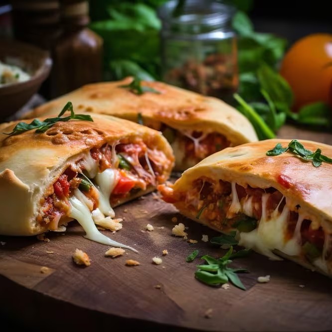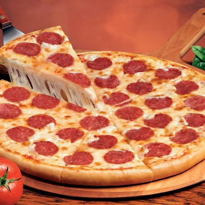 Molho, muçarela, calabresa, Catupiry e orégano.