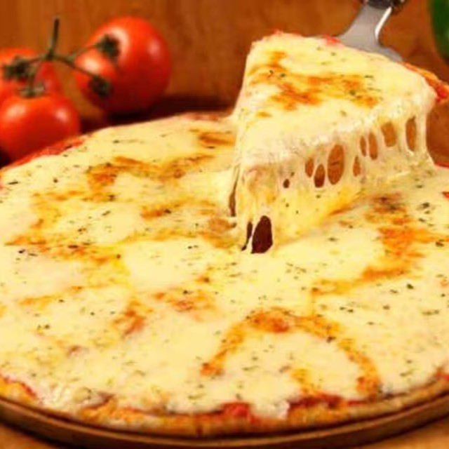 Molho, muçarela, frango, Catupiry (danúbio) e orégano.