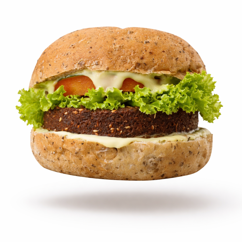 Sanduíche mix de tofu grelhado e defumado. Acompanha alface, tomate, pepino agridoce e cebola no shoyu
