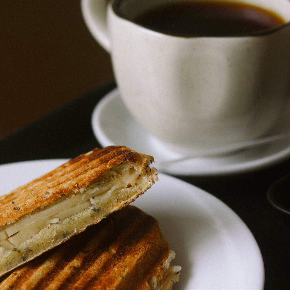 Nosso pão do dia, na chapa, com muçarela de castanhas.