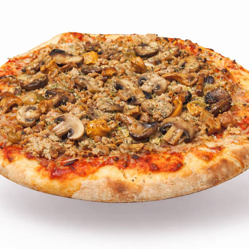 Massa tradicional, molho de tomate, queijo de castanhas, mix de cogumelos salteados (porto bello, shitake, paris, shimeji), tomate, azeitonas e orégano.