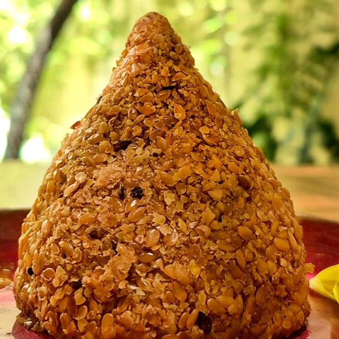 Massa preparada com mandioca e mix de farinha sem glúten da casa, temperada com especiarias. O recheio é elaborado com carne de jaca da chapada diamantina, temperos orgânicos e cream cheese de castanha da casa. Empanada em linhaça dourada.