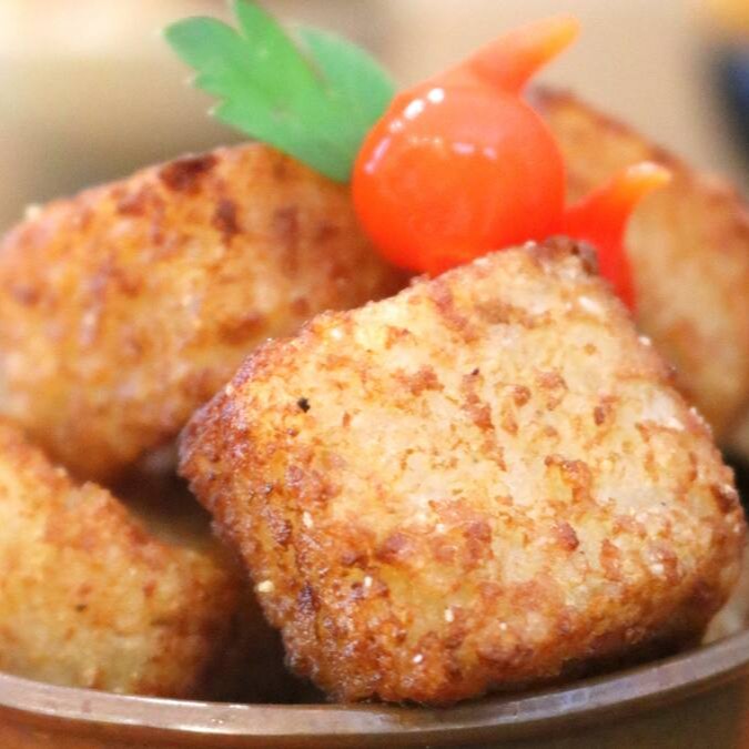 O mais crocante e saboroso Dadinho de Tapioca Defumado. Elaborado com castanha de caju, tofú defumado orgânico e especiarias.