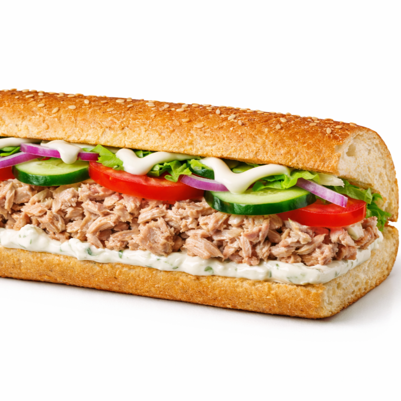 Pão 16 cm com parmesão e orégano, atum ralado com cream cheese.