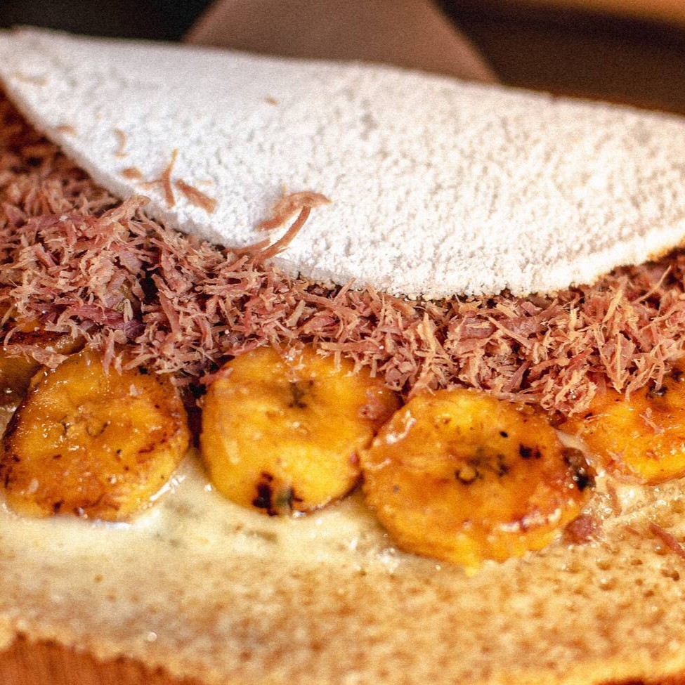 Queijo mussarela + carne seca + banana da terra Tam G 21cm ----------------------tags----------------------- Beiju, Nordestino, taxa grátis, oferta, promo Perto de casa, desconto, entrega rápida, off