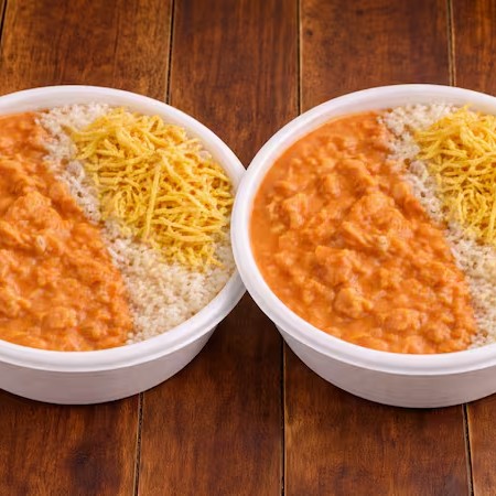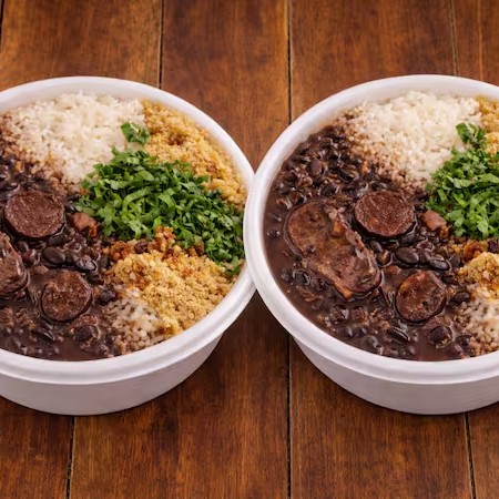 2 marmitas de feijoada individual (arroz branco, linguiça calabresa, carne de sertão, bacon, couve refogado e farofa). Indicado para 02 pessoas.