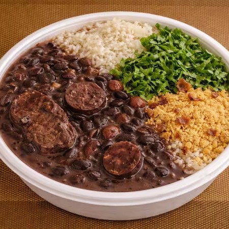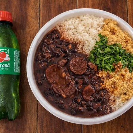 Marmita feijoada magra individual (arroz branco, linguiça calabresa, carne de sertão, bacon, couve refogado e farofa) + Refrigerante 200ml conforme disponibilidade. Marmita indicada para 01 pessoa.