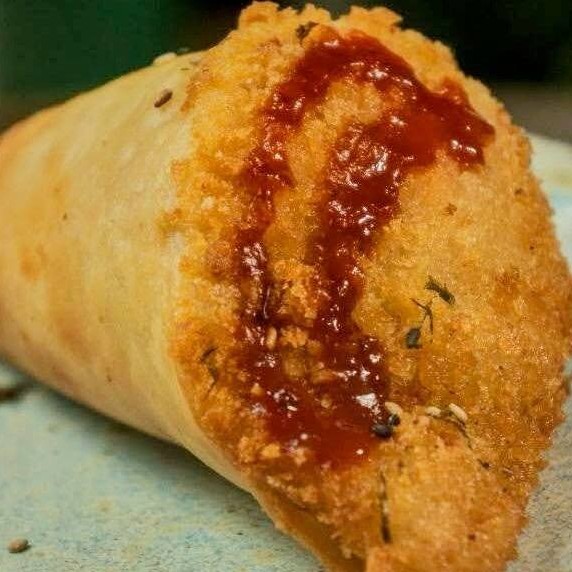 Frito Na Farinha Panko,Recheado Com Salmão ,Cheese E Cebolinha,