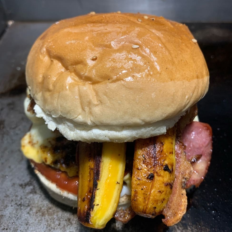 🔥 Burger Nordestino Especial Carne artesanal suculenta de 120g, queijo coalho grelhado, bacon crocante, banana da terra dourada na chapa e nosso molho especial da casa, que equilibra o doce, o salgado e o defumado na medida perfeita. Uma combinação surpreendente, cremosa e cheia de personalidade. Quem prova, pede de novo! 🤤