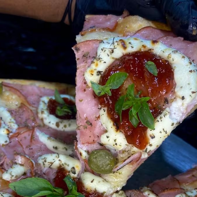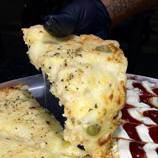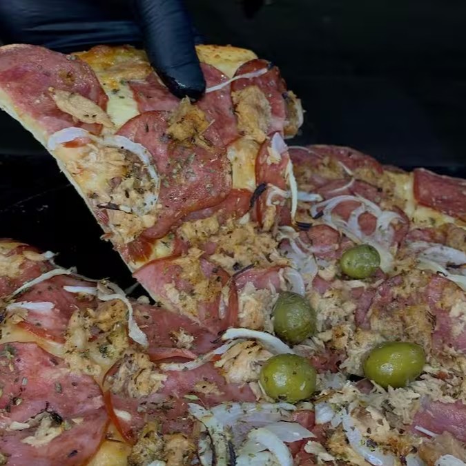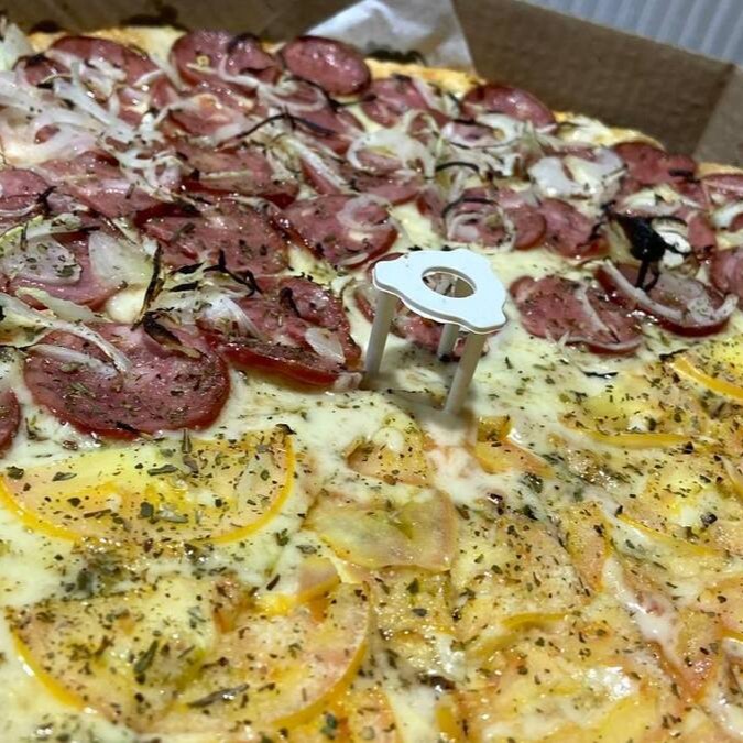 sabor de calabresa com cebola e mussarela com tomate