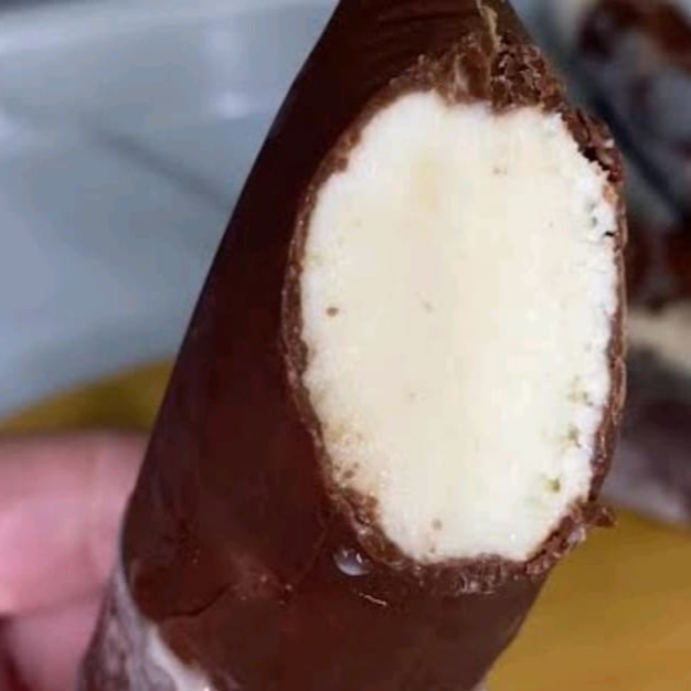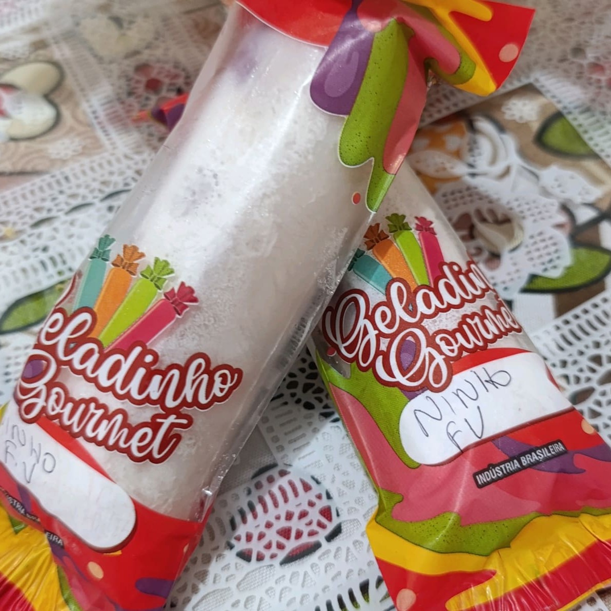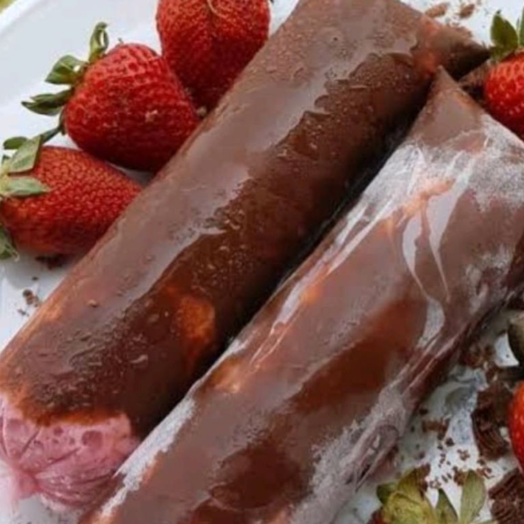Geladinho com base cremosa de paçoca com recheio de creme de avelã
