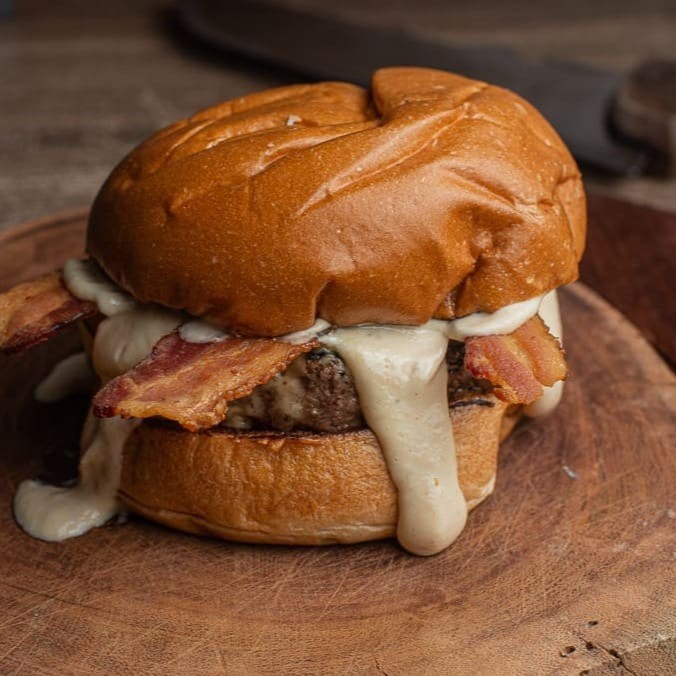 Delicie-se com o nosso 'Classic Bacon', uma verdadeira obra-prima na categoria 'Burgers + Fritas'. Este hambúrguer é elaborado com mestria, começando por um pão de batata incrivelmente macio e saboroso. No seu interior, um suculento blend de 160g de carne selecionada, coberto por uma camada de queijo prato derretido suavemente, é finalizado com fatias de bacon crocantes e um leve toque do nosso exclusivo molho barbecue artesanal. Acompanha uma porção de fritas (180g) de crocância inigualável, que complementa perfeitamente a experiência. Um prato que convida a saborear cada mordida e desfrutar de uma experiência culinária incrível!