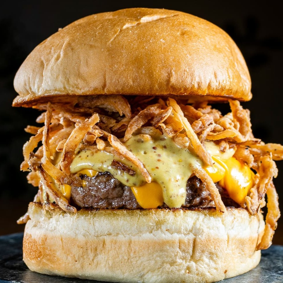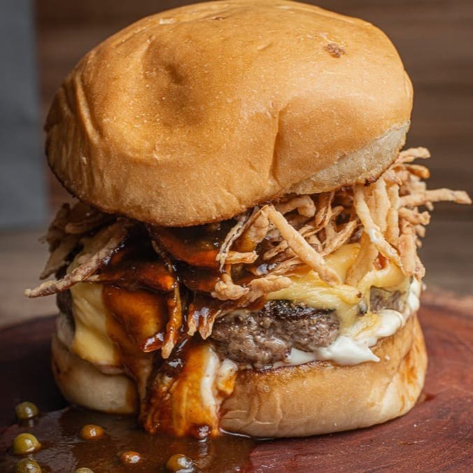 Sofisticado 'Kingdom', um luxuoso hambúrguer gourmet. Envolto em um pão de batata completamente artesanal, delicadamente macio e saboroso. No coração do prato, descobre-se um generoso blend de 160g de pura suculência. O queijo cheddar inglês, autêntico e intenso, adiciona um toque de sofisticação. Banhado em um molho de mostarda com mel, este hambúrguer revela uma combinação perfeita de doçura e picância. Ainda possui um sofisticado toque de wasabi, que lhe confere um sabor exótico e intrigante. Finalizando com um crocante e aromático crispy de cebolas, para uma textura extra e um sabor inigualável. Uma experiência culinária verdadeiramente digna de realeza.