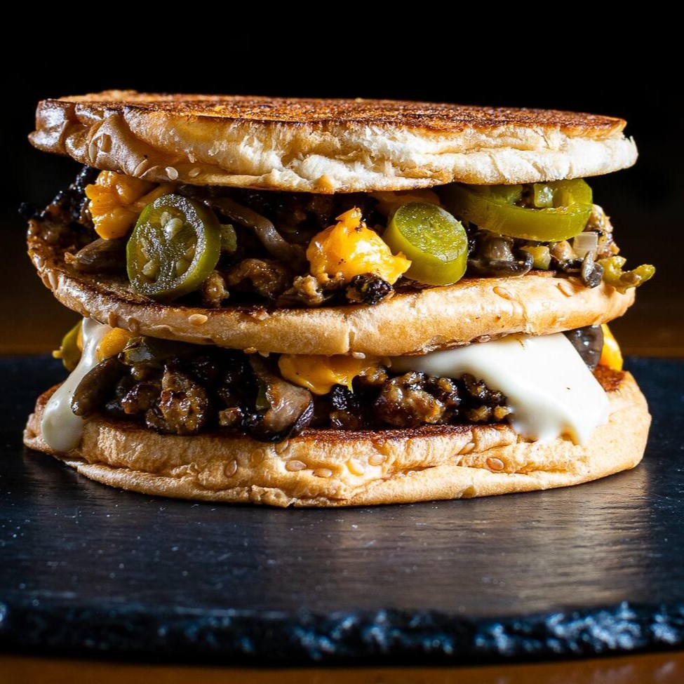 O 'Soho Black' é uma deliciosa opção vegana, que traz um pão australiano crocante e saboroso envolvendo um generoso recheio de 160g de cogumelos frescos, cuidadosamente selecionados. O queijo prato vegano, de textura aveludada, complementa perfeitamente este prato, enquanto fatias de tomate fresco acrescentam um toque de acidez. As folhas de rúcula, de sabor levemente apimentado, e nosso exclusivo molho da casa, dão a finalização perfeita a esta deliciosa opção. Experimente e se surpreenda!