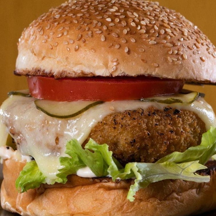 O 'Veg Grains', da categoria 'Vegano', é um prato esplêndido de pão de gergelim, generosamente recheado com um blend sofisticado de grão de bico, feijão preto e abóbora. Acompanha um molho artesanal de vegetais assados no missô, conferindo uma explosão de sabores. A frescura é garantida com a adição de tomates recém-colhidos, alface frisée crocante e cebola roxa. Para finalizar, uma suave maionese vegana enriquece ainda mais o paladar. Um prato para deleitar-se sem culpa, cheio de sabor, saúde e consciência.