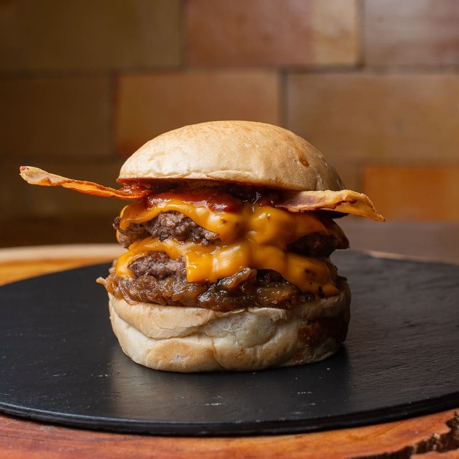 O 'Sweet Bacon Duplo' é uma deliciosa combinação de um pão brioche fresco e macio, abrigando um duplo smash de 60g, preparado com cuidado para garantir uma textura incrivelmente suculenta. Adicionamos uma generosa camada de queijo cheddar Inglês derretido e cebola caramelizada, trazendo um toque adocicado e balanceado para o prato. E para finalizar, deliciosas fatias de bacon crocante e o irresistível molho barbecue, que confere um sabor defumado e intensifica a experiência. Esta é uma iguaria da nossa categoria 'Smash', ideal para os amantes da autêntica culinária americana.