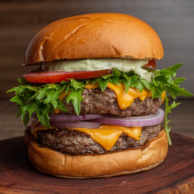 O 'Little Ogre', pertencente à irresistível categoria 'Burgers + Fritas!', apresenta um sedutor pão de batata, abrigando um generoso duplo blend de 160g de pura suculência. Vem acompanhado por uma dupla camada de cheddar Inglês derretido, que complementa perfeitamente a crocância da alface americana fresca. O toque final fica por conta do tomate fresco e suculento, e da nossa exclusiva maionese verde, que traz um sabor inigualável. Uma verdadeira explosão de sabores que promete encantar os paladares mais exigentes.