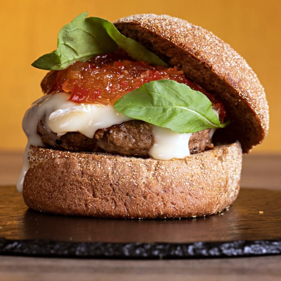 Descubra a essência da 'Italy', um Burger Gourmet divinamente elaborado. Ele é composto por um suculento blend de 160g, cuidadosamente acomodado em um pão artesanal de batata, que confere uma textura única e um sabor irresistível. O tomate, chapeado à perfeição, adiciona um toque refrescante e contrastante. A rica cobertura de queijo parmesão, finamente ralado, derrete suavemente, complementando a harmonia de sabores. Para finalizar, uma generosa camada de maionese de manjericão, feita à mão, adiciona um final agradavelmente aromático e cremoso. Uma verdadeira homenagem à culinária italiana em forma de hambúrguer.