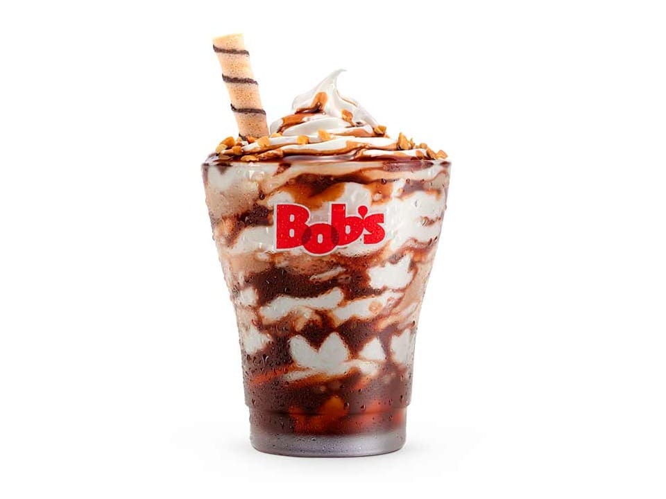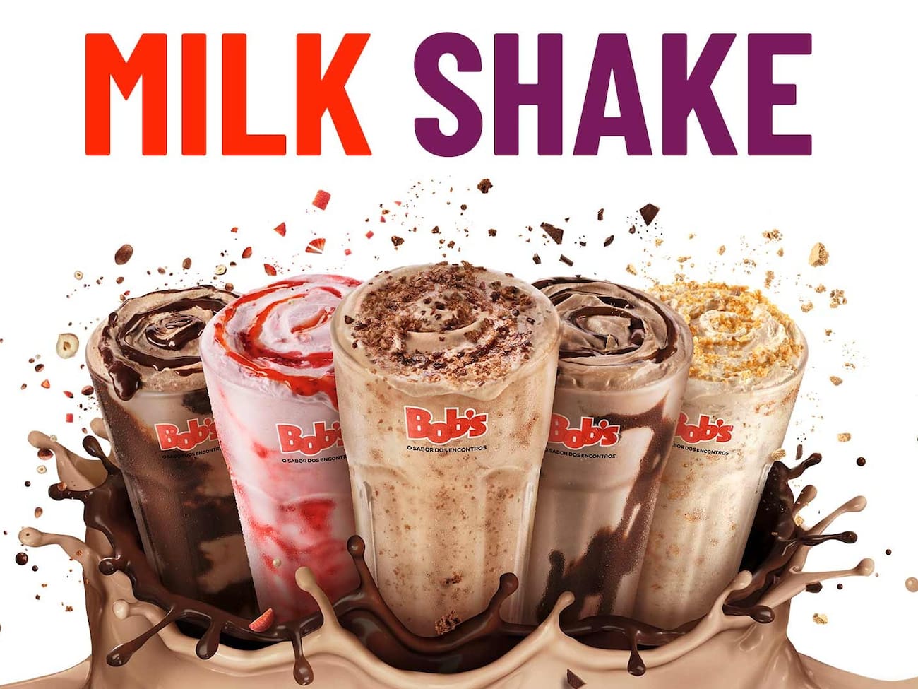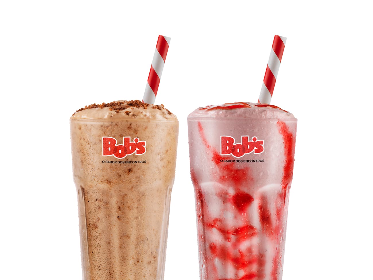 Milkshake clássico do Bob's, feito com nosso sorvete especial de baunilha e calda de chocolate