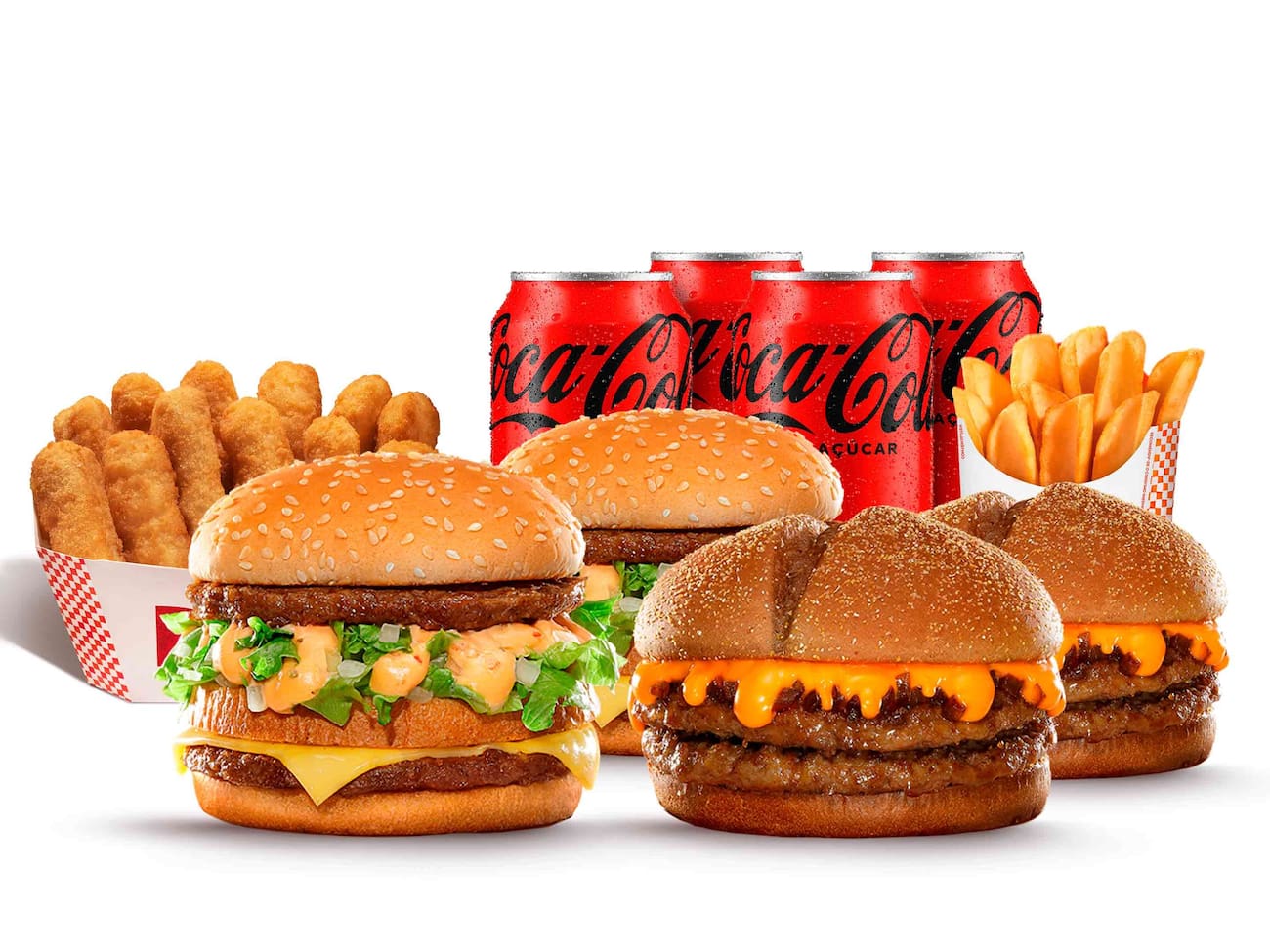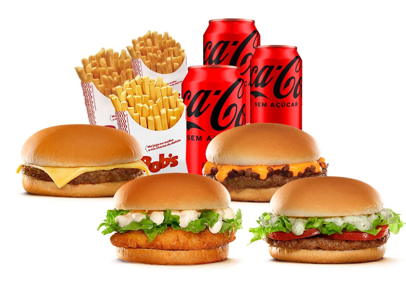 O combo é composto por 4 sanduíches à sua escolha. Escolha entre os seus lanches preferidos: Bob's Burguer, Chicken Crispy, Cheddar ou Cheeseburger.