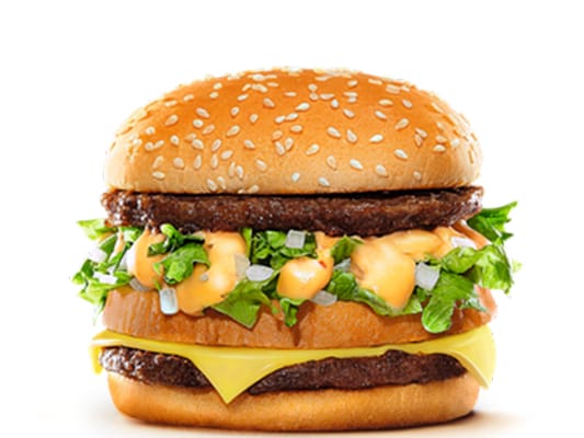 Clássico que todo mundo gosta: dois hambúrgueres bovinos com queijo num pão quentinho. Tudo isso acompanhado de refrigerante .