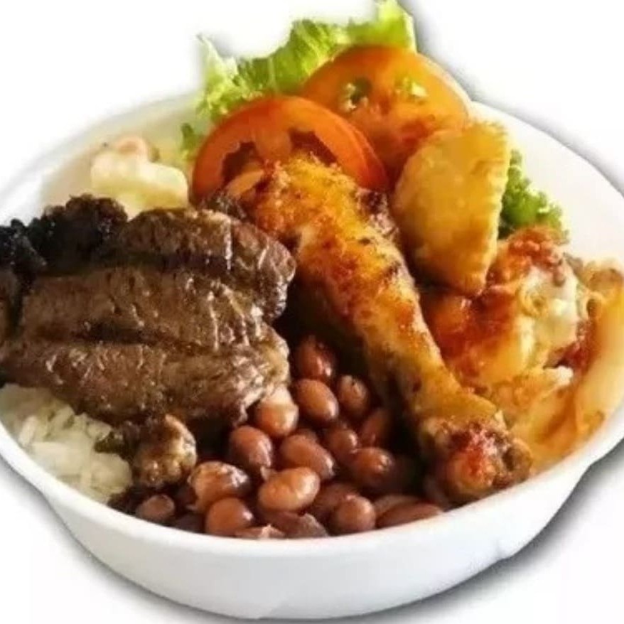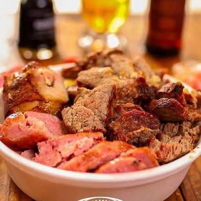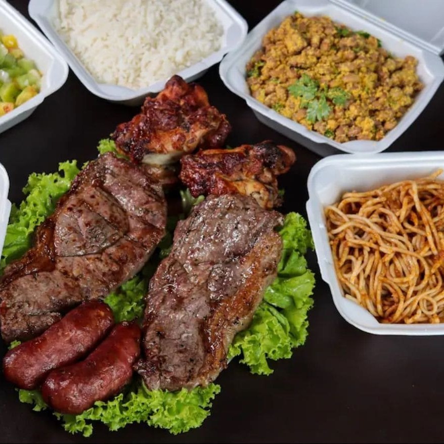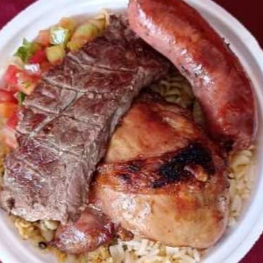 Composto por 1 fatias de filé grill, 1 Toscanas, 1 Fatias de lombo súinos e 1 Sobre coxas, e 1 refri lata, é perfeito para servir 1 pessoas. Acompanha, Feijão tropeiro, Arroz e Macarrão com nossas saladas de maionese e vinagrete Delicioso churrasco com guarnições deliciosas e acompanha tudo em uma só quentinha.