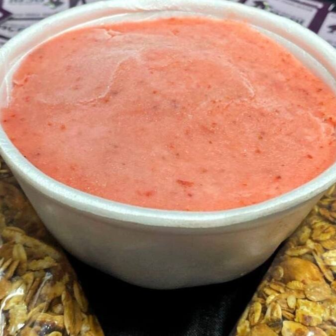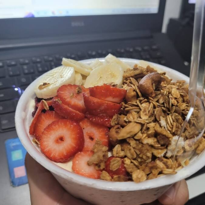 Acompanha: Morango, doce de leite,granola e disqueti. *Imagem Ilustrativa