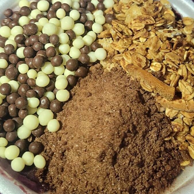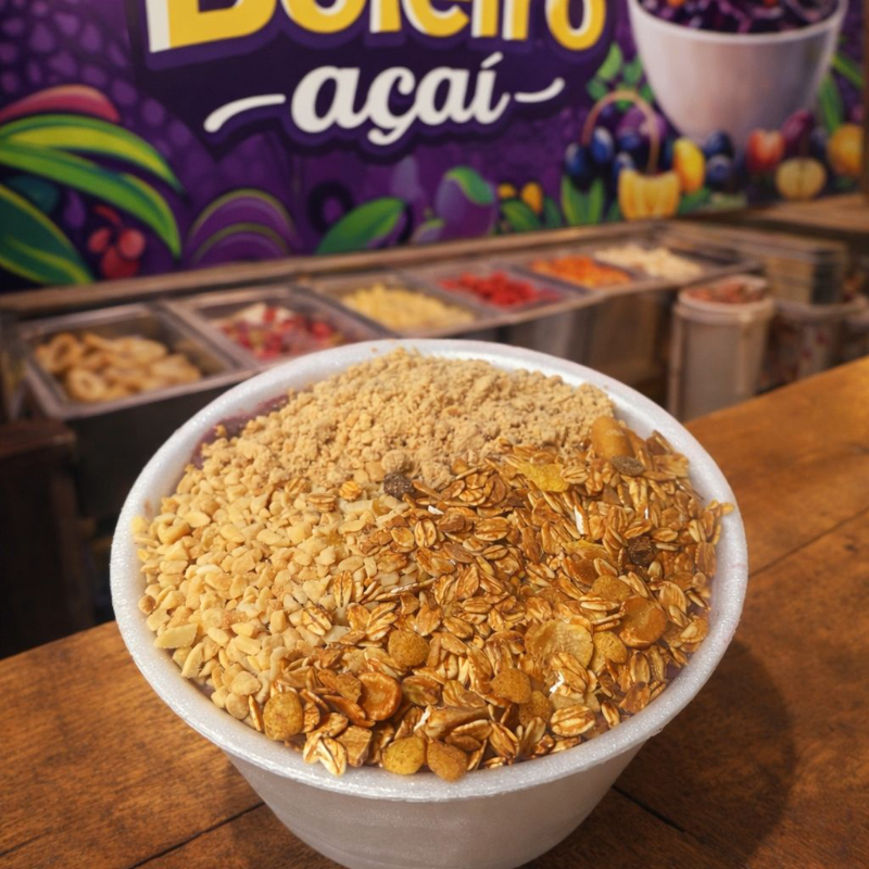 Acompanha: Granola, Ovomaltine, paçoca e leite condensado(a parte).