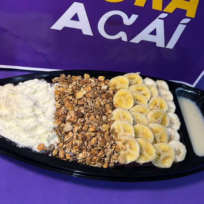 2 Açaís 300ml + 3 complementos grátis Ideal para dividir ou aproveitar em dobro!